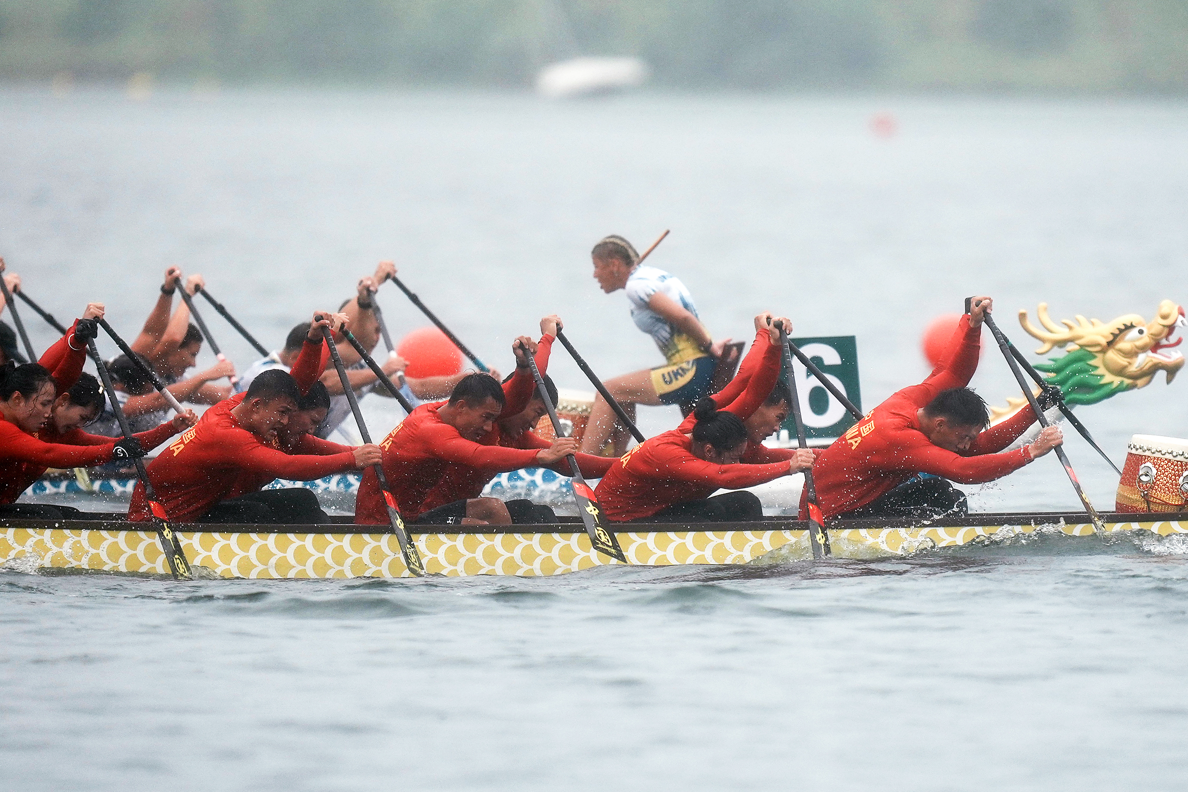 8月10日,中国队在2025年成都世运会龙舟10人座2000米追逐赛决赛比赛中。中国队最终获得第六名。新华社记者 李嘉南 摄