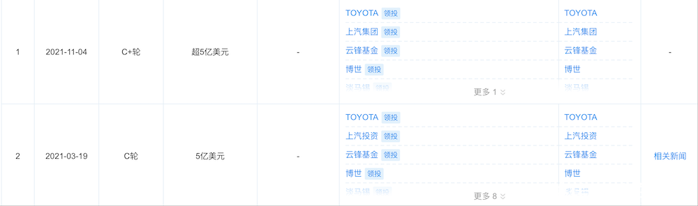 ▲Momenta拿到上汽集团的融资(来源:企查查)
